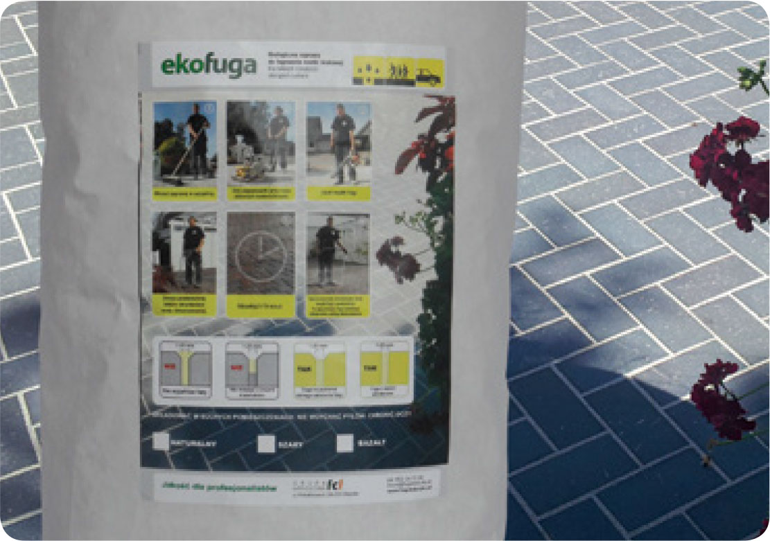 Jedyna na rynku fuga stosowana "na sucho". Szczególnie polecana do wąskich szczelin od 1 mm. Gotowa do użycia mieszanka do zasypywania szczelin pomiędzy kostkami brukowymi ze wszelkiego rodzaju materiałów. Twardnieje po odparowaniu wody.