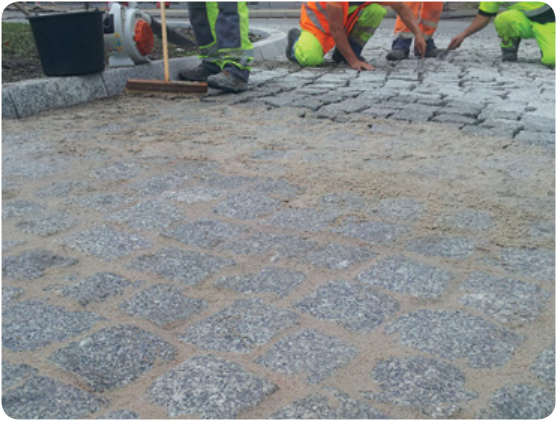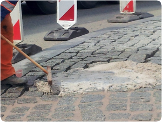 Do fugowania nawierzchni brukowych z kamienia naturalnego, kostki brukowej betonowej, kostki