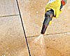 Bezpośrednio po zakończeniu fugowania należy usunąć ewentualne pozostałości zaprawy za pomocą suchej, miękkiej miotły zmiatając ukośnie do kierunku fug. Uwaga: przy fugowaniu „na sucho” na powierzchni kostki może pozostać cienki film z żywicy. Zniknie on samoczynnie za kilka tygodni lub miesięcy w zależności od pogody.