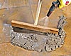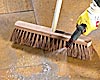Nóż, rakla gumowa, miotła z włosia kokosowego (tzw. smołówka) i wąż gumowy w końcówką do spryskiwania.